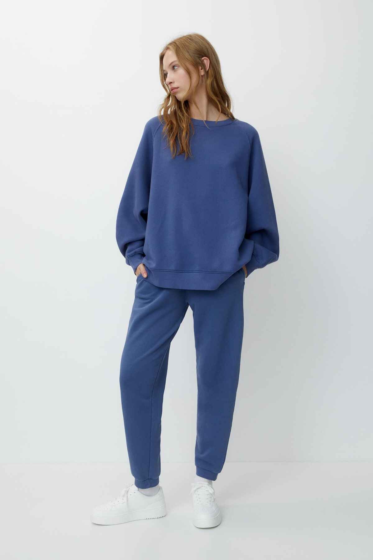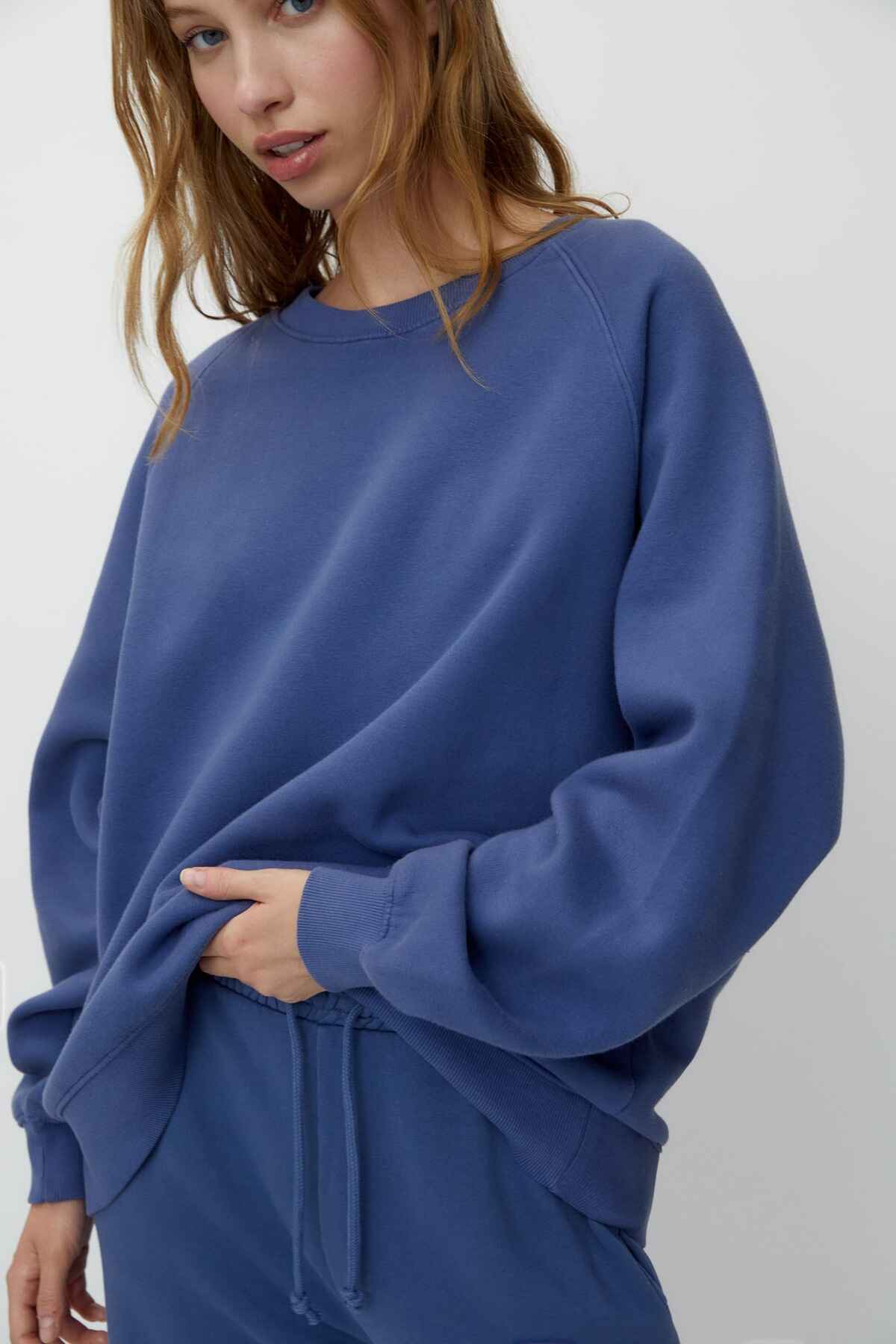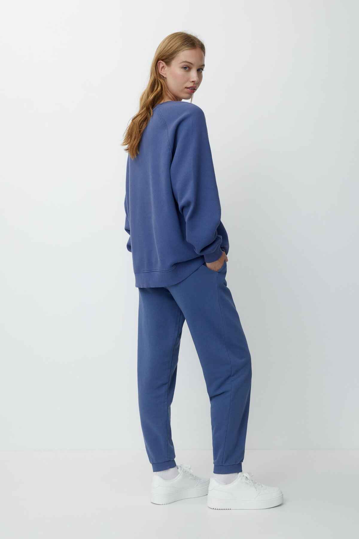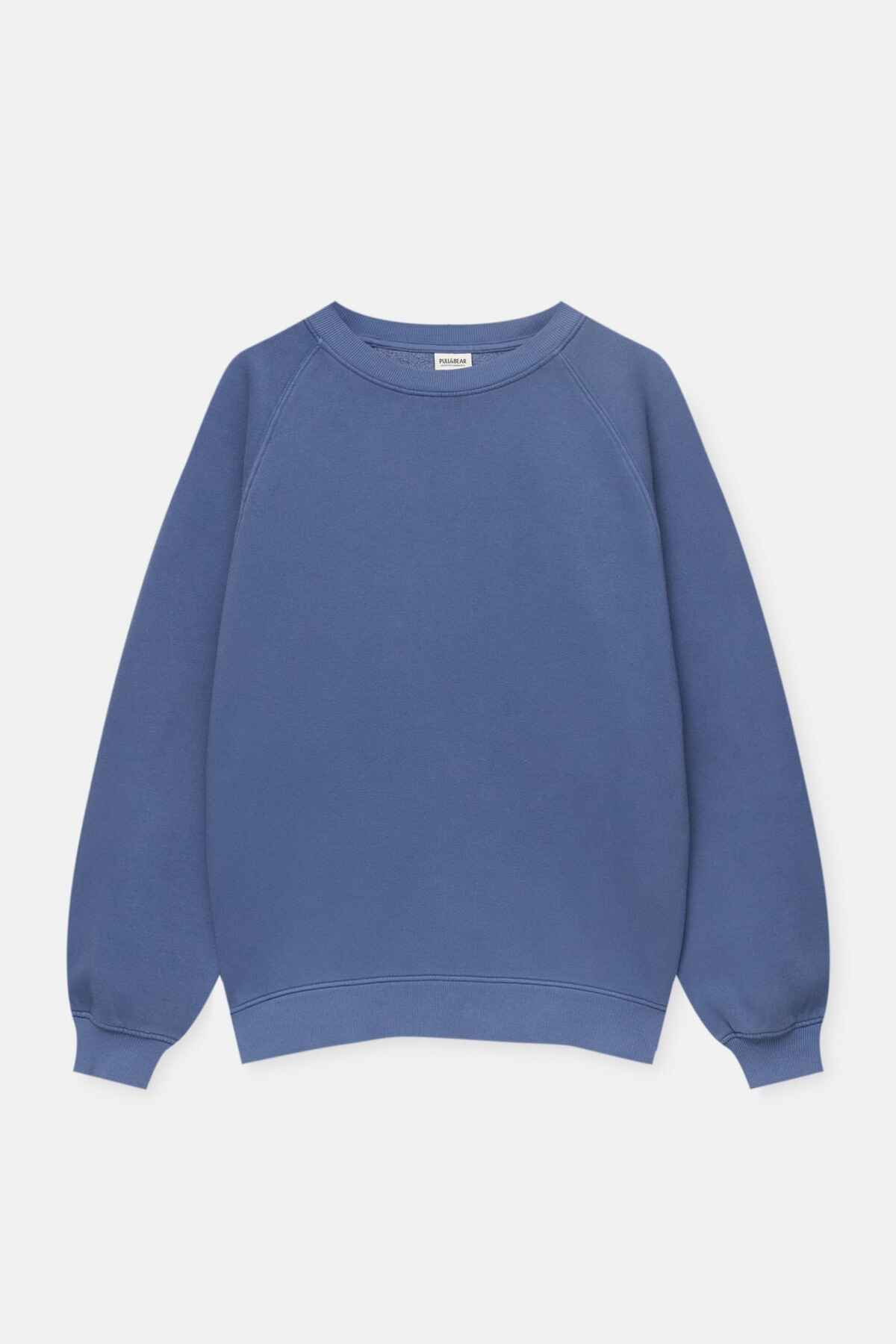 Model size: M Model height: 177 cm Colour: Indigo Faded sweatshirt with long sleeves, round neckline and ribbed collar, hem and cuffs.
