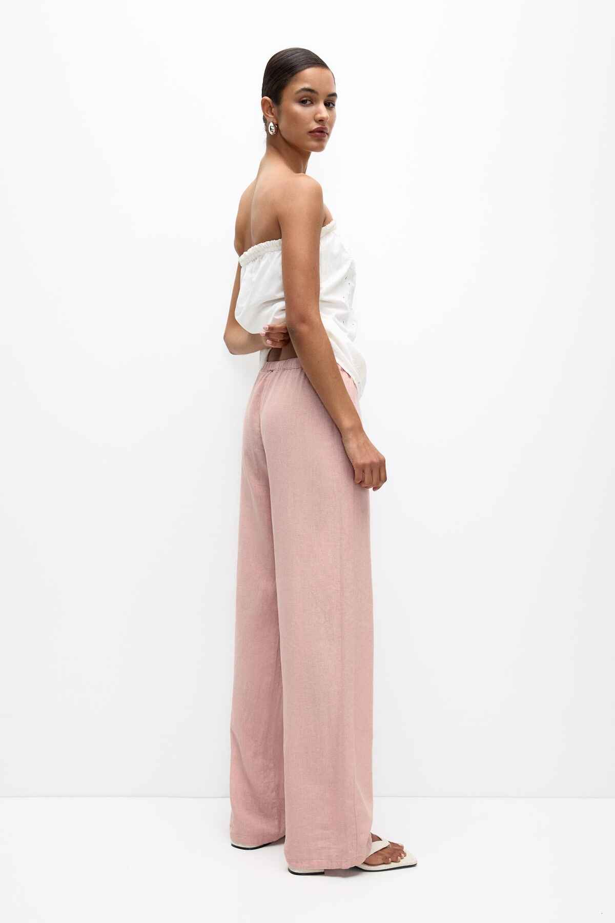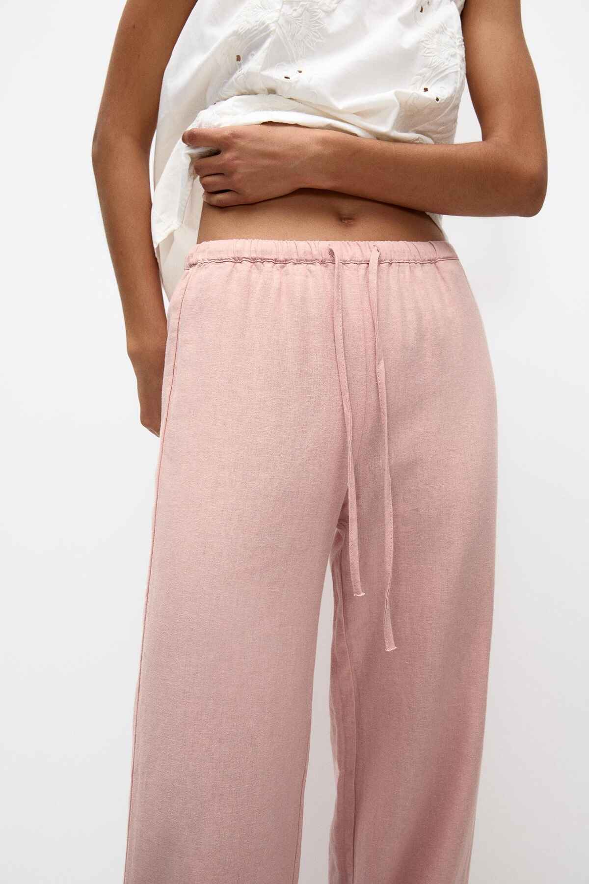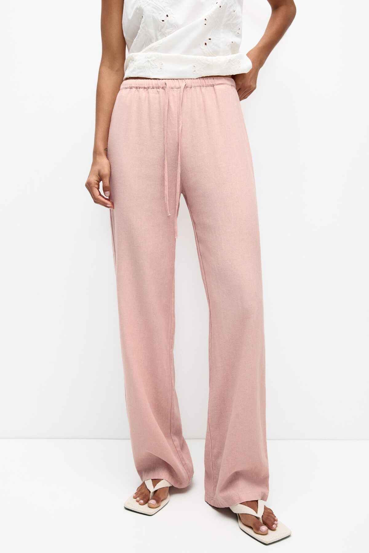 Model size: S Model height: 173 cm Colour: Pink Flowing rustic pants with an elasticated waistband. Made from a viscose and linen blend.