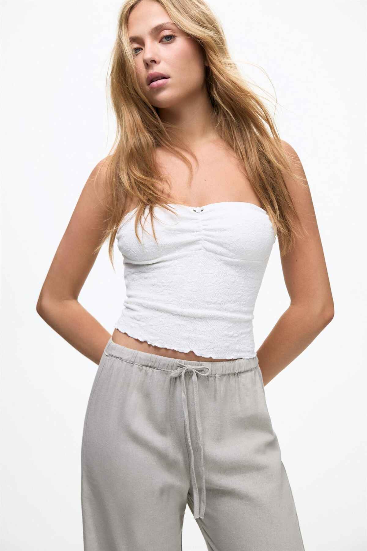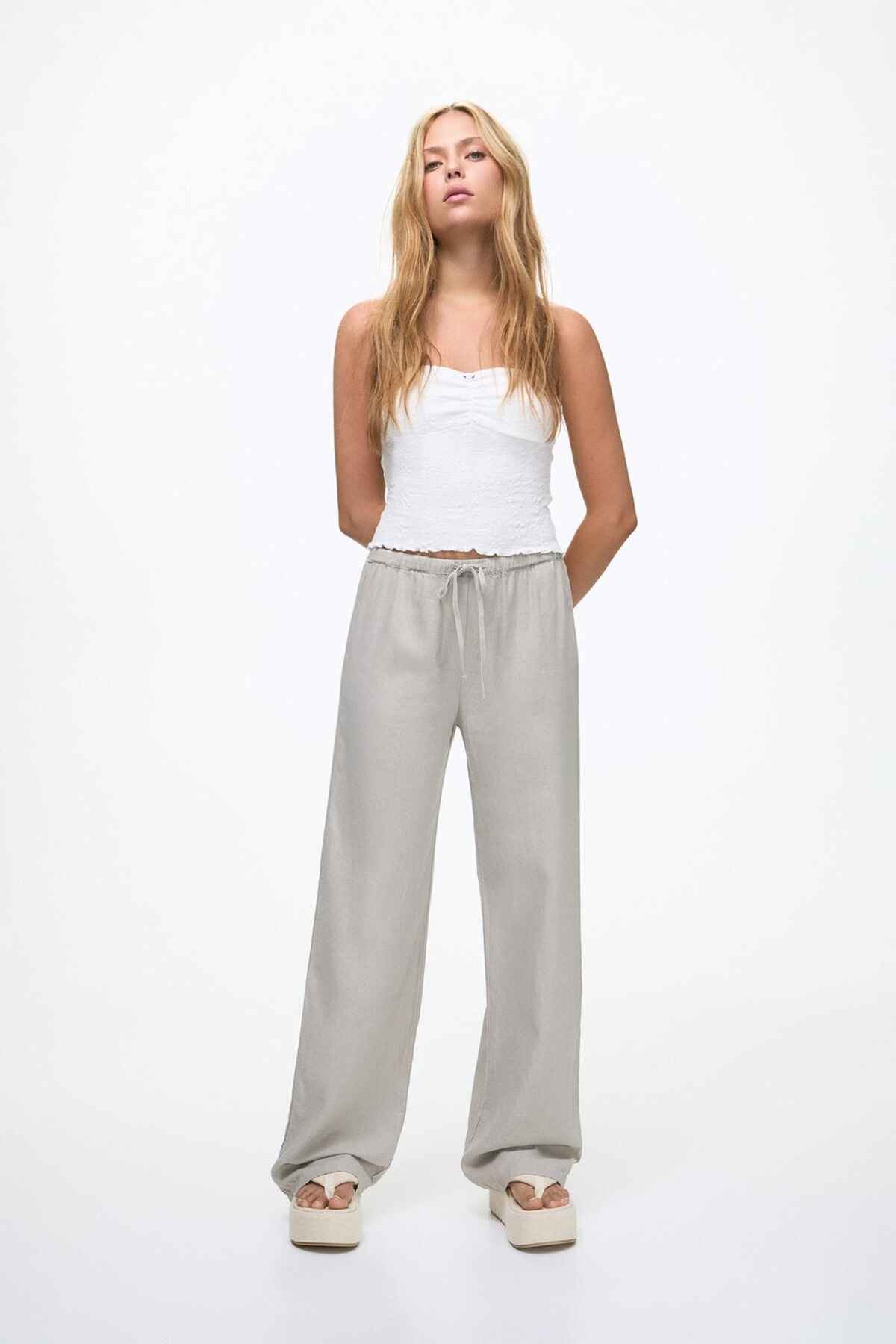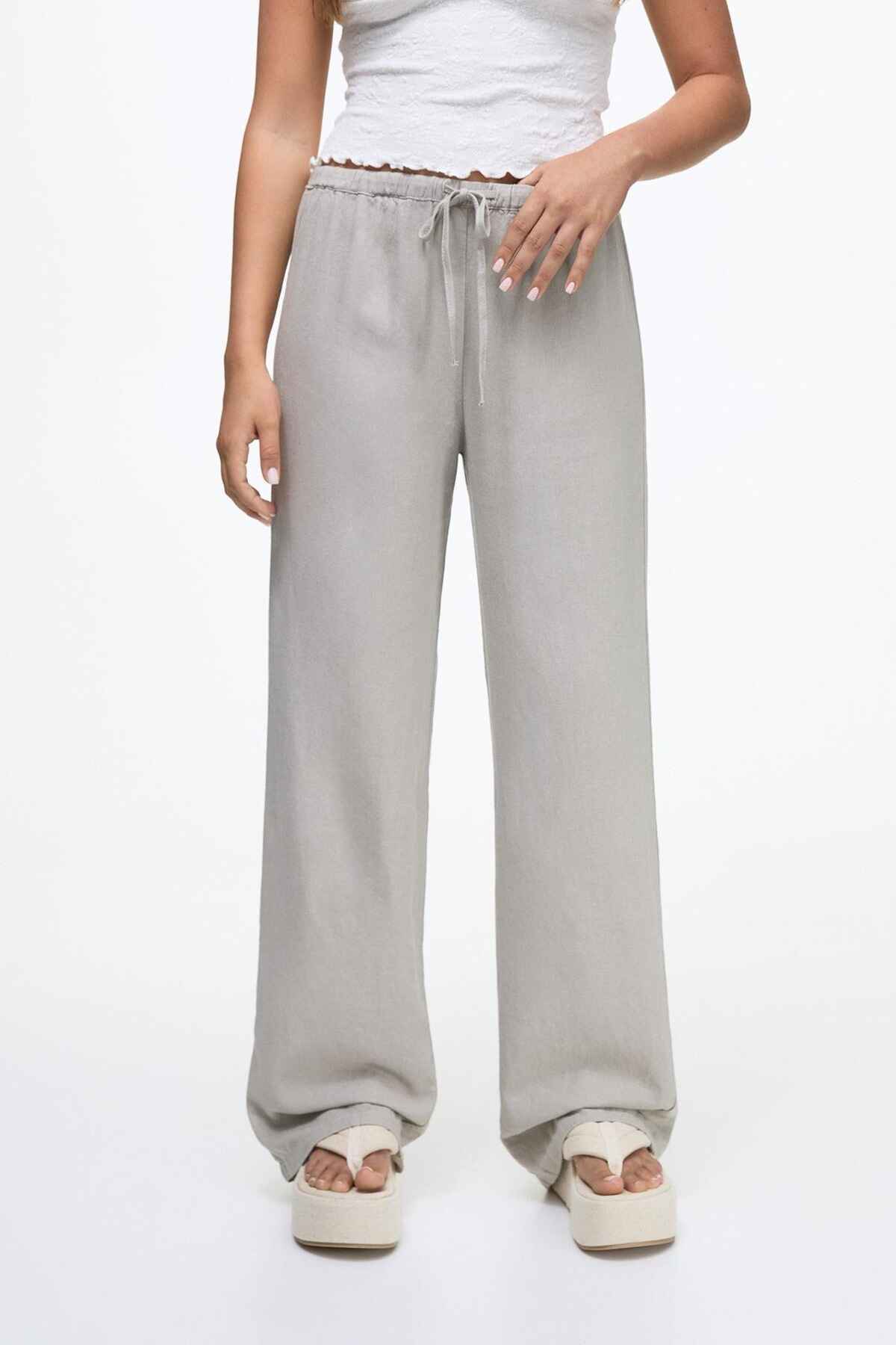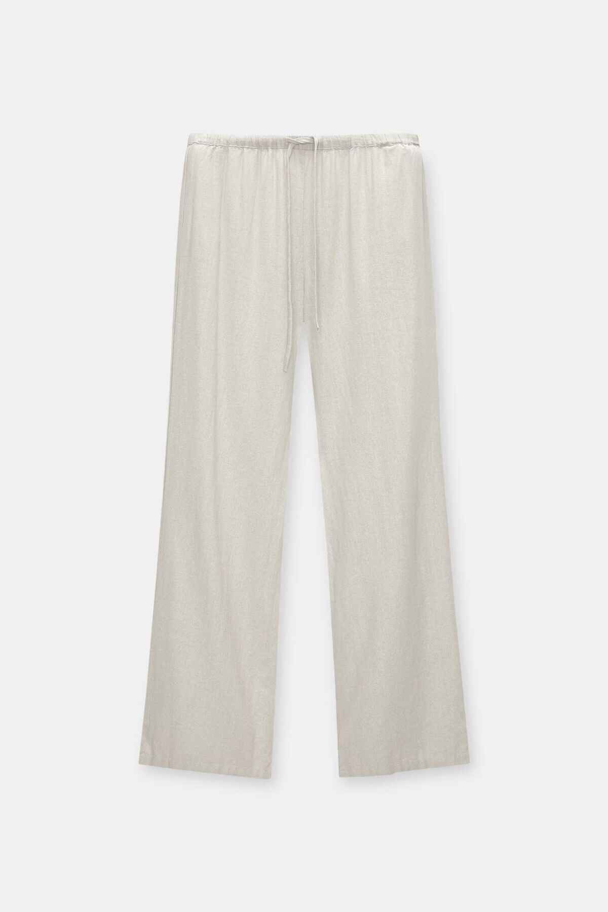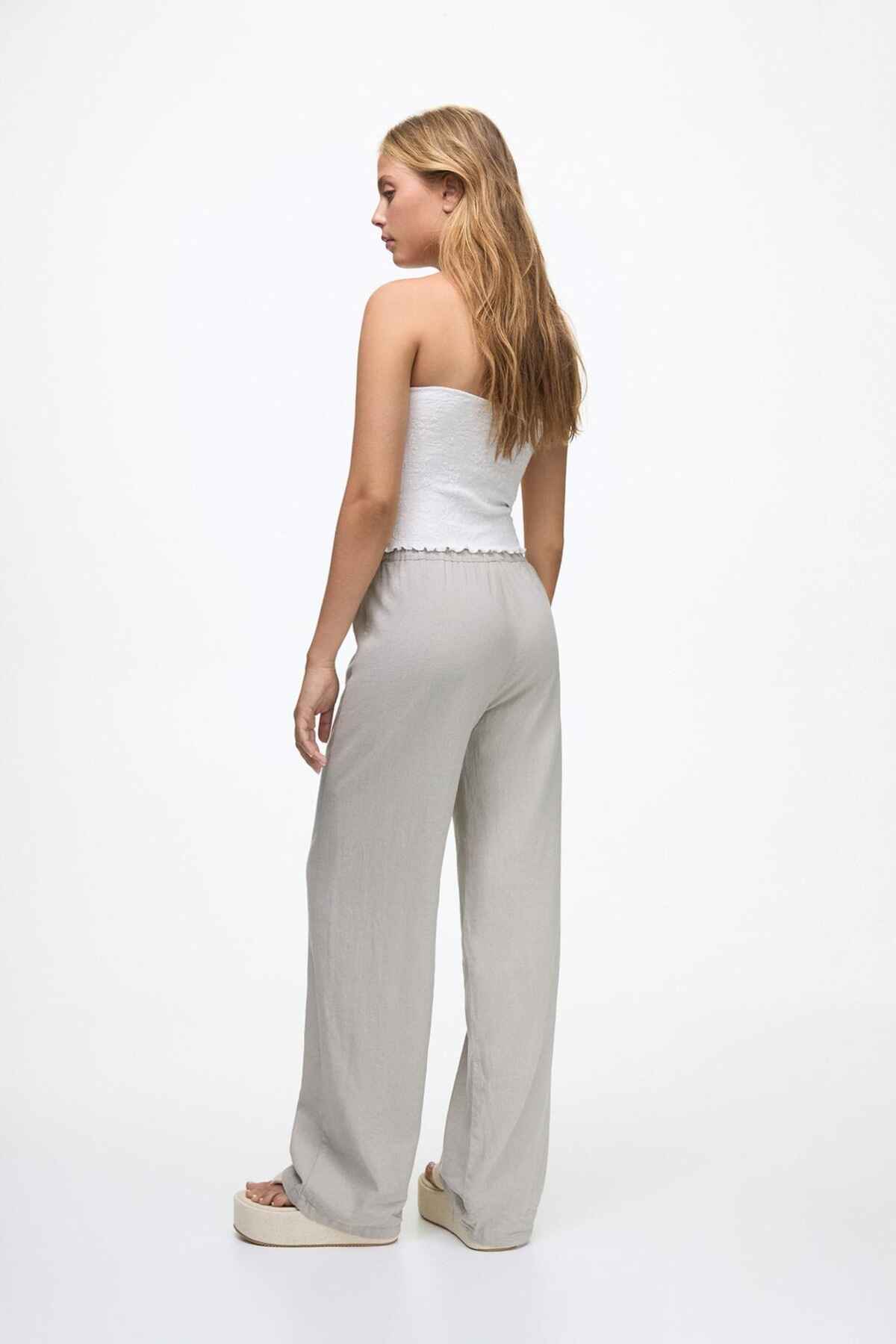 Model size: S Model height: 173 cm Colour: Taupe Flowing rustic pants with an elasticated waistband. Made from a viscose and linen blend.