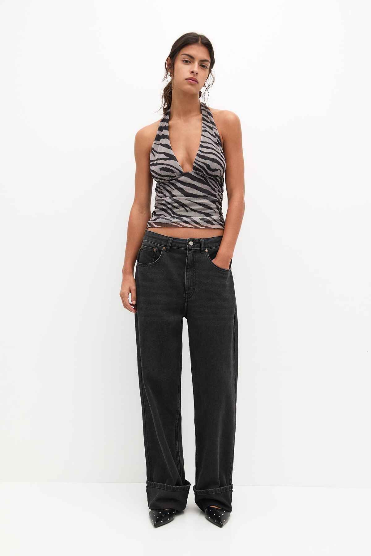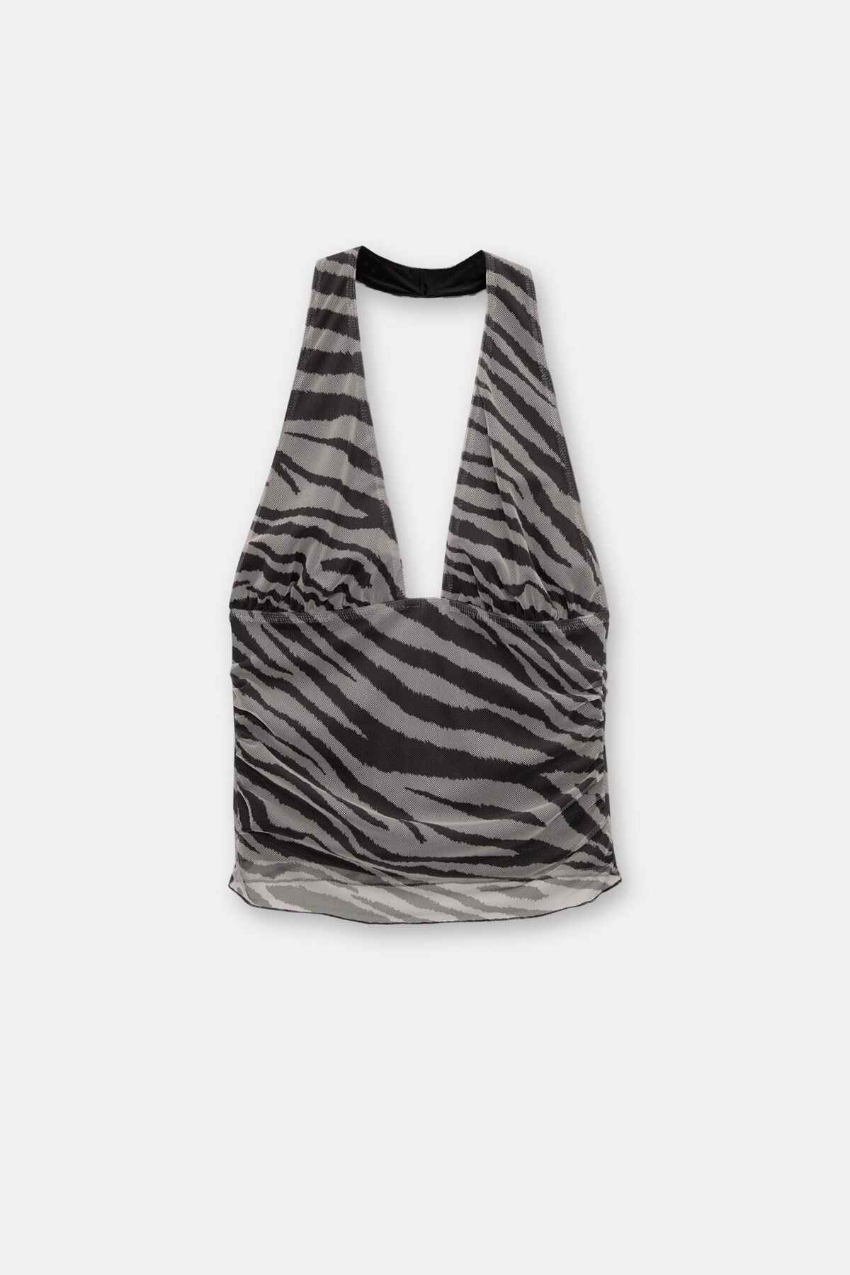 Model size: S Model height: 174 cm Colour: Zebra Top with a halter neckline, a tie-dye print and gathered detail on the sides. Made of stretch fabric.