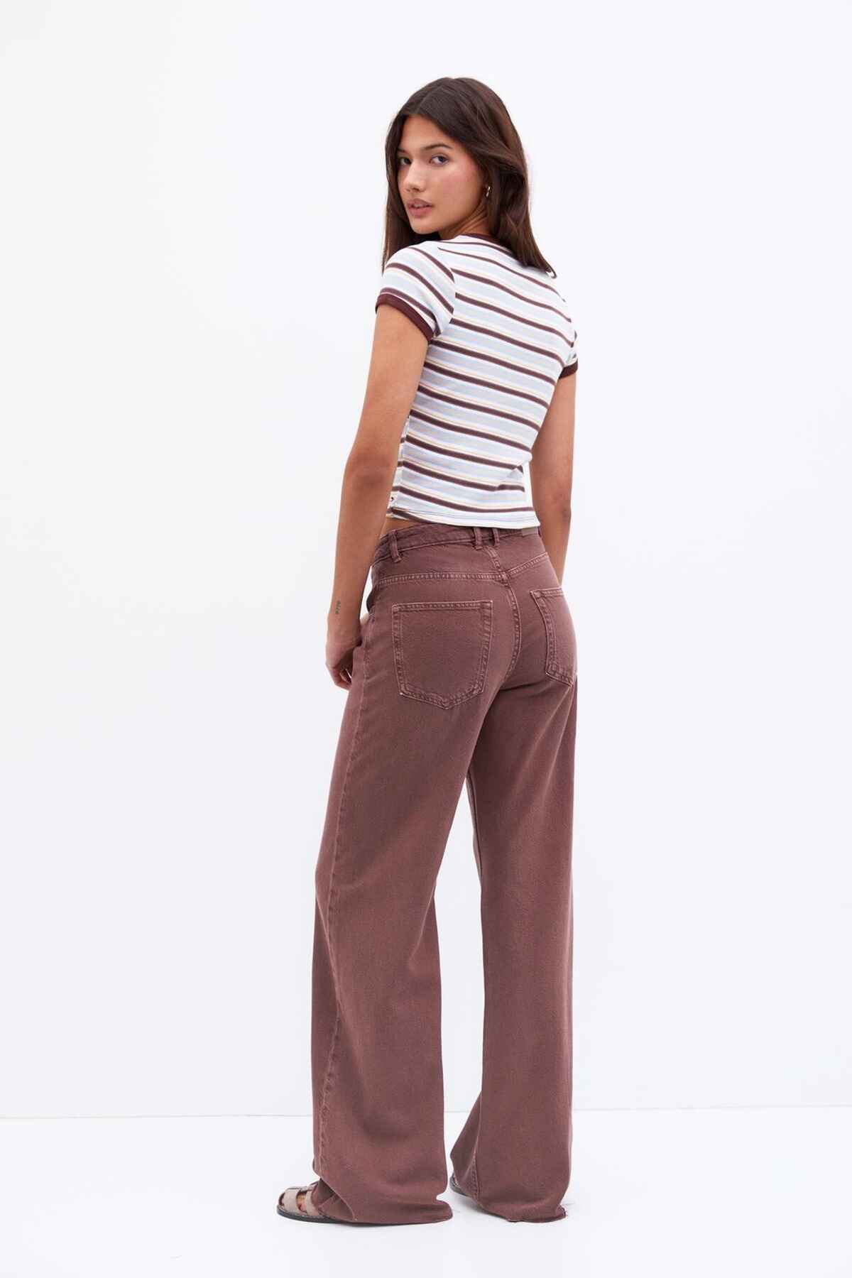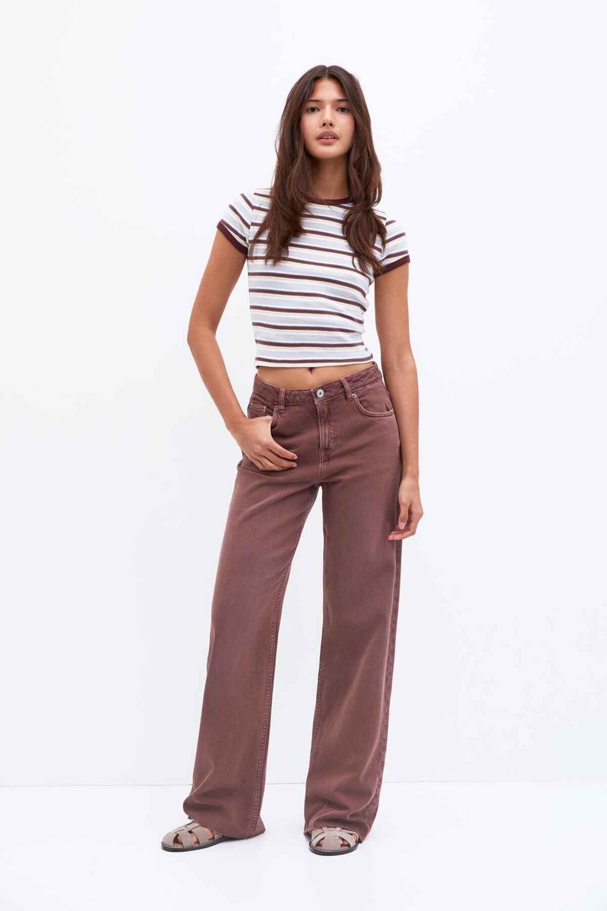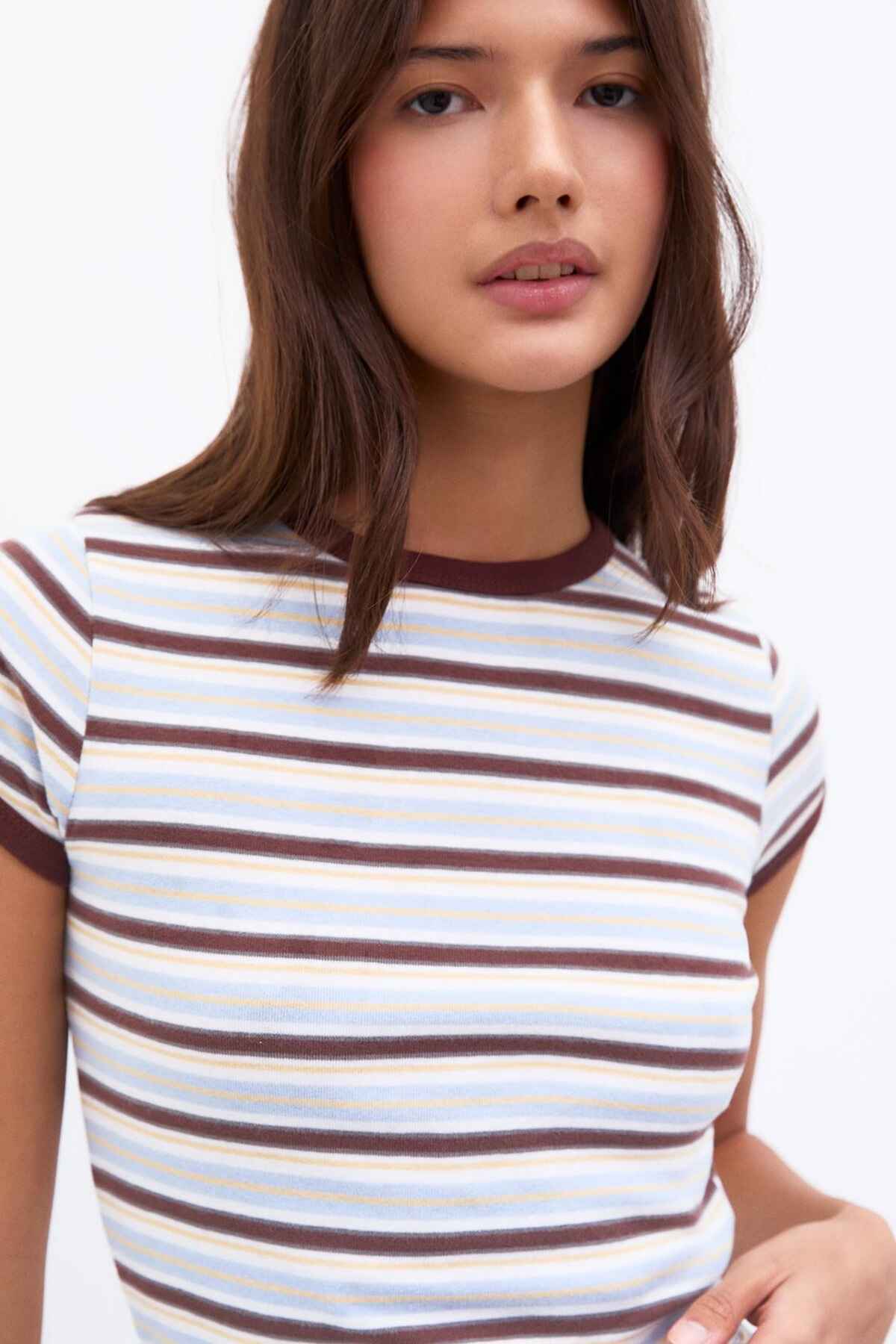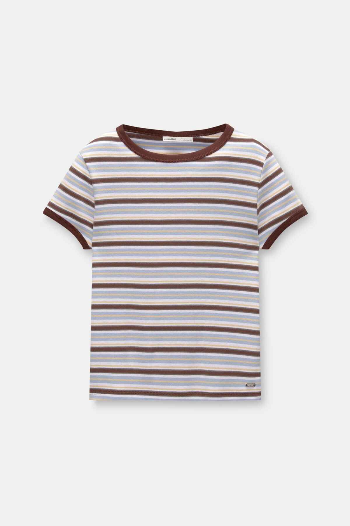Model size: S Model height: 175 cm Colour: Brown Striped T-shirt with short sleeves and a round collar. Available in assorted colors and made of cotton.