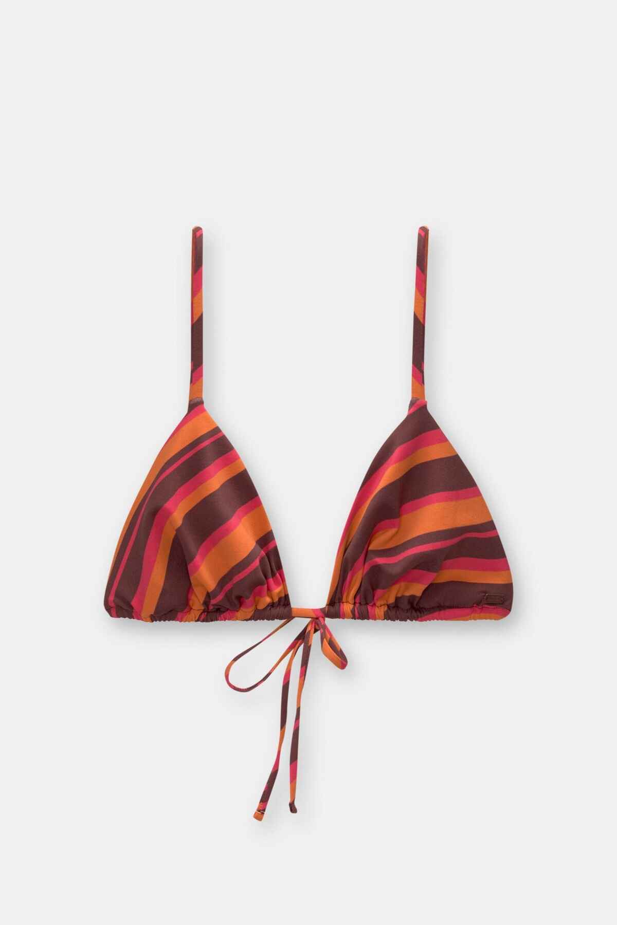 Model size: S Model height: 175 cm Colour: Orange Bikini top with a stripe print, thin straps and straps at the back that tie into knots. Made of stretch fabric.