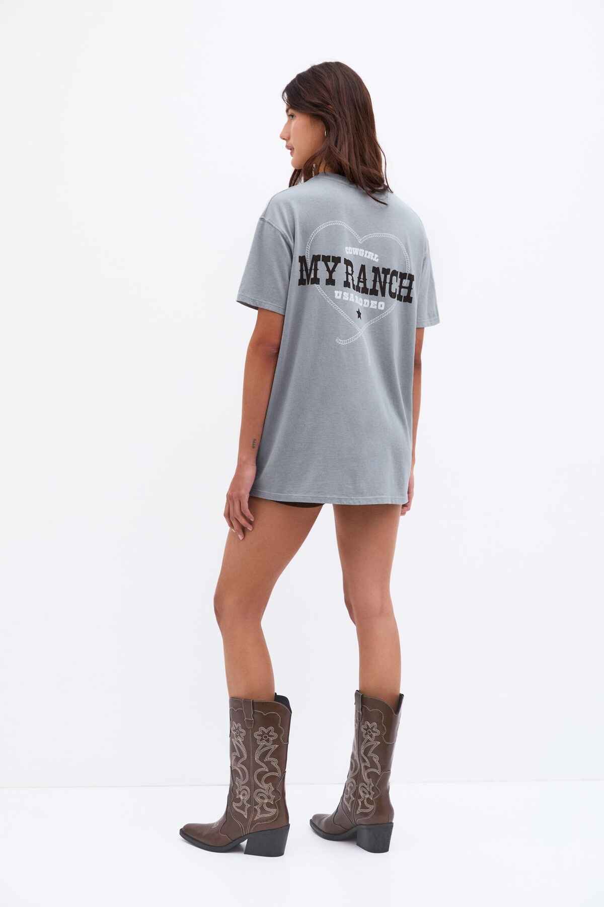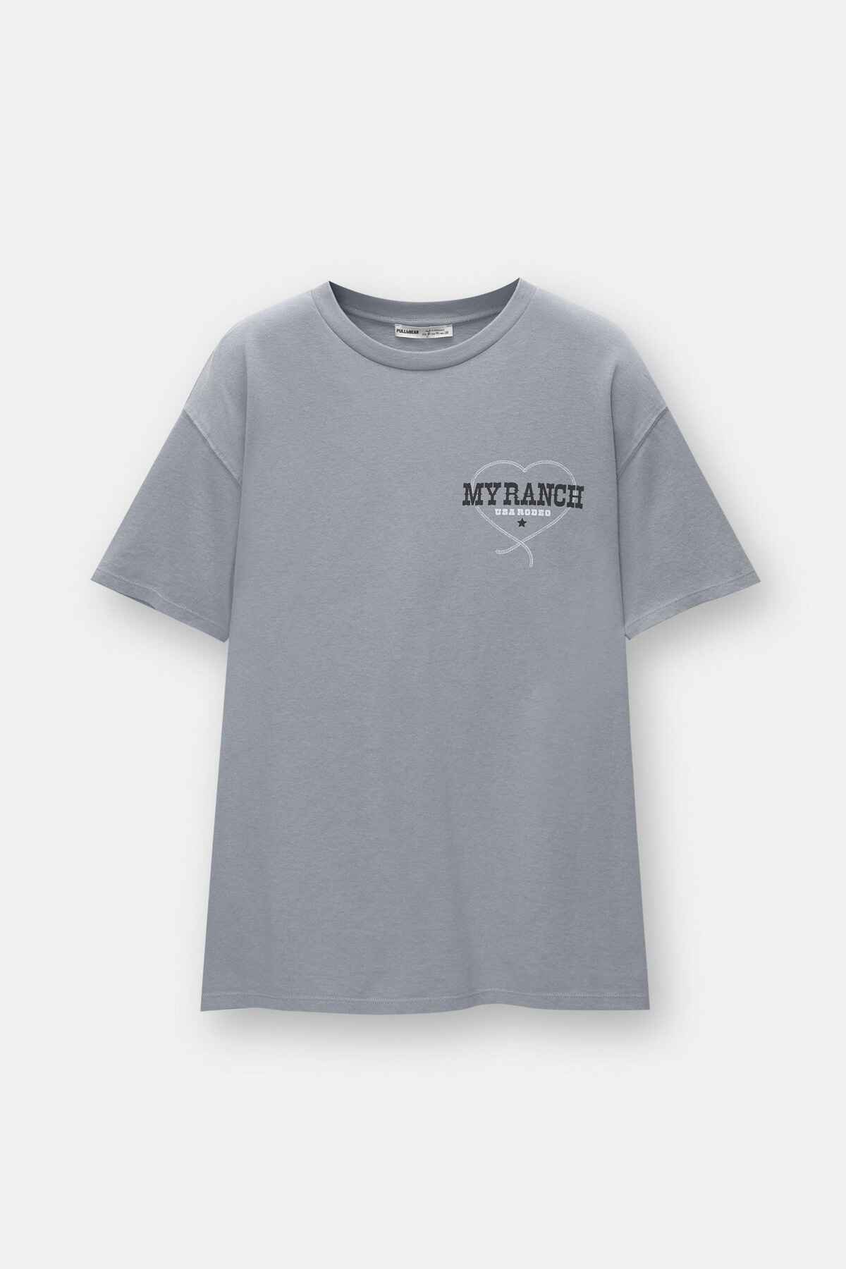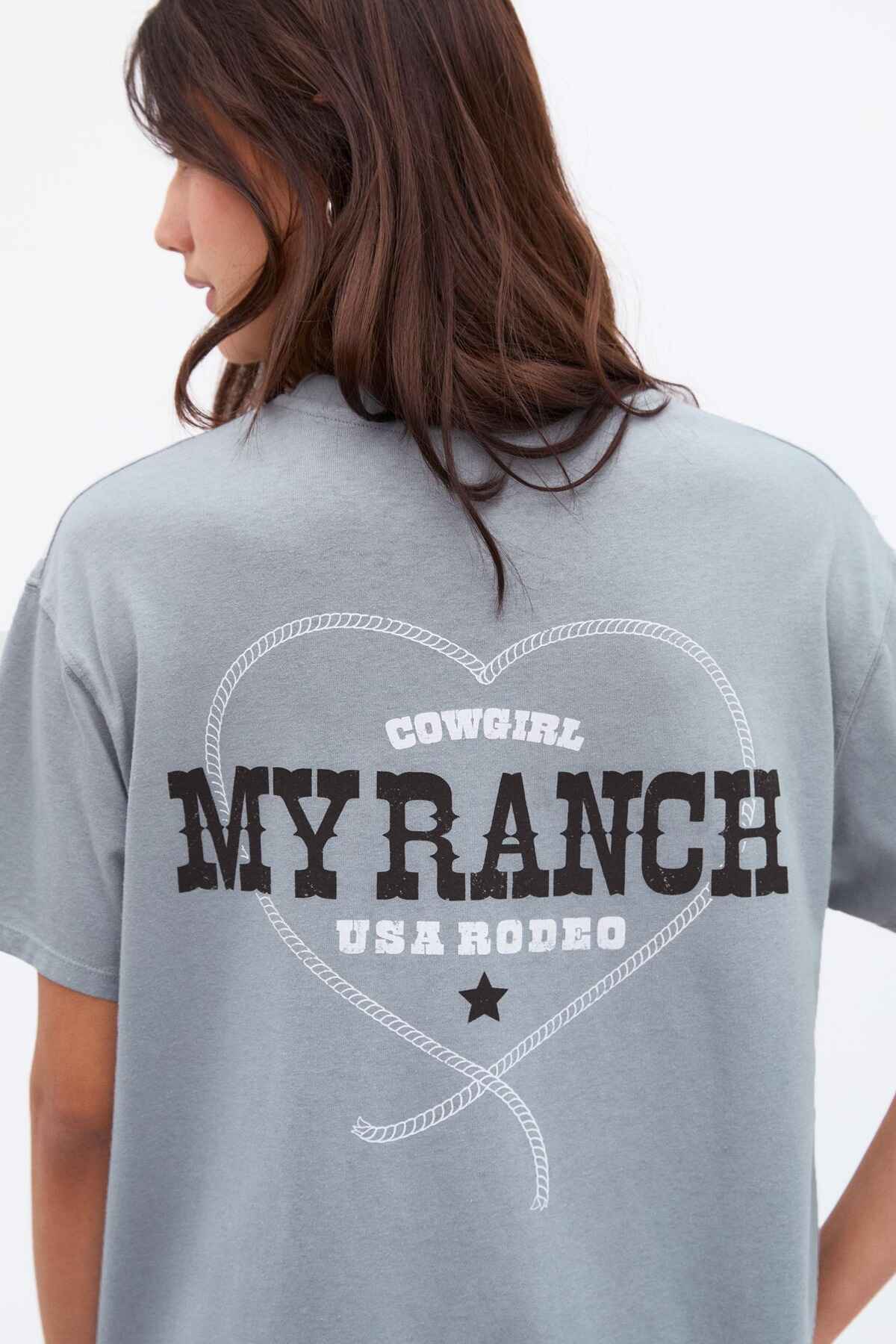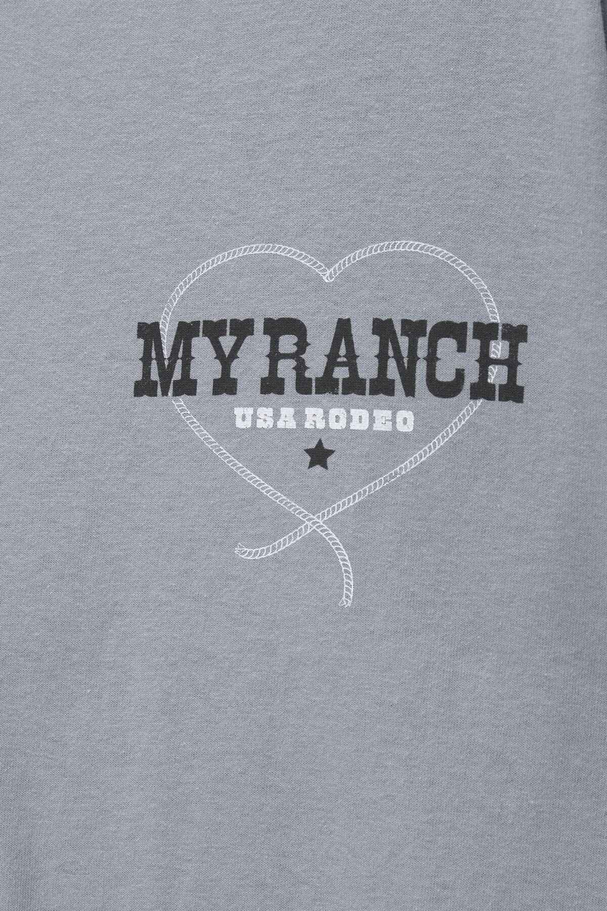 • T-shirt with My Ranch USA Rodeo graphic, a round collar and short sleeves.